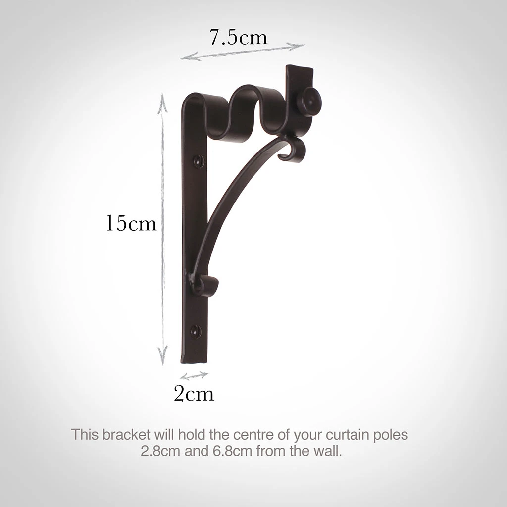- Double brackets are generally used at either end of your pole. With a reach (depth) of 7.5cm to the front of the pole, they will fit most window settings.