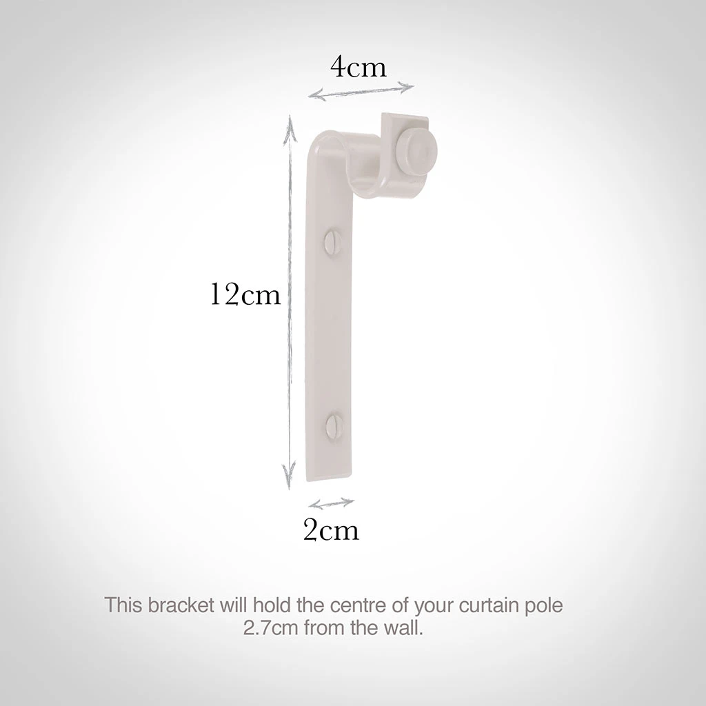 - Standard brackets are generally used at either end of your pole. With a reach (depth) of 4cm to the front of the pole, they will fit most window settings.