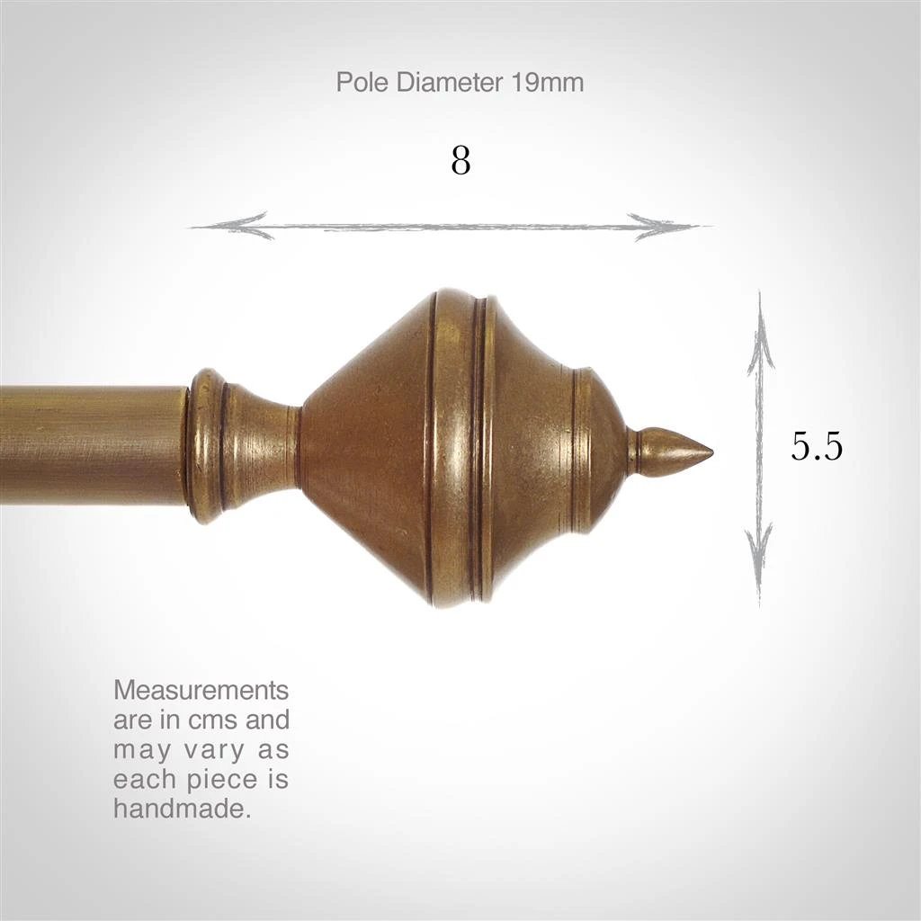 Handmade at Jim Lawrence from natural brass which has been lightly antiqued for a subtle, aged look, these finials from part of our stunning collection of brass curtain pole accessories, including centre and recessed brackets, rings and a wide range of lovely finials to personalise your look. Once fitted inside the pole, the finials can be fixed in place with a tiny grub screw that is located at each end at the back of the pole.