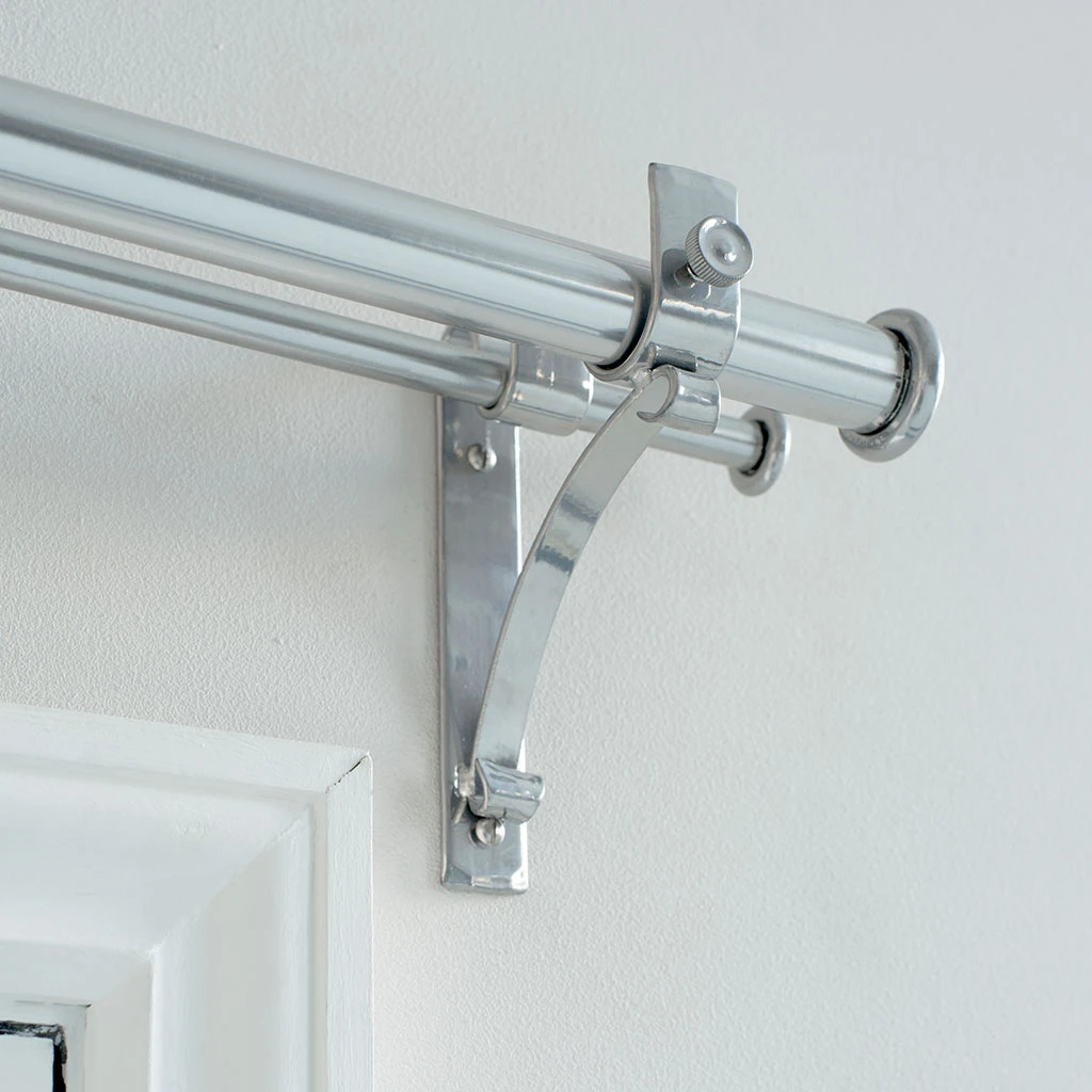 - Double brackets are generally used at either end of your pole. With a reach (depth) of 9cm to the front of the pole, they will fit most window settings.