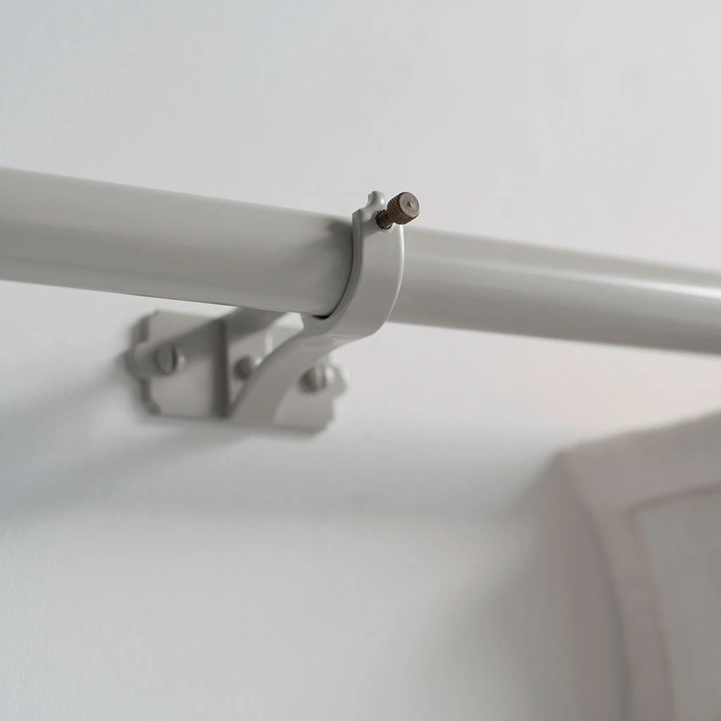 - Standard brackets are generally used at either end of your pole. With a reach (depth) of 8cm to the front of the pole, they will fit most window settings.