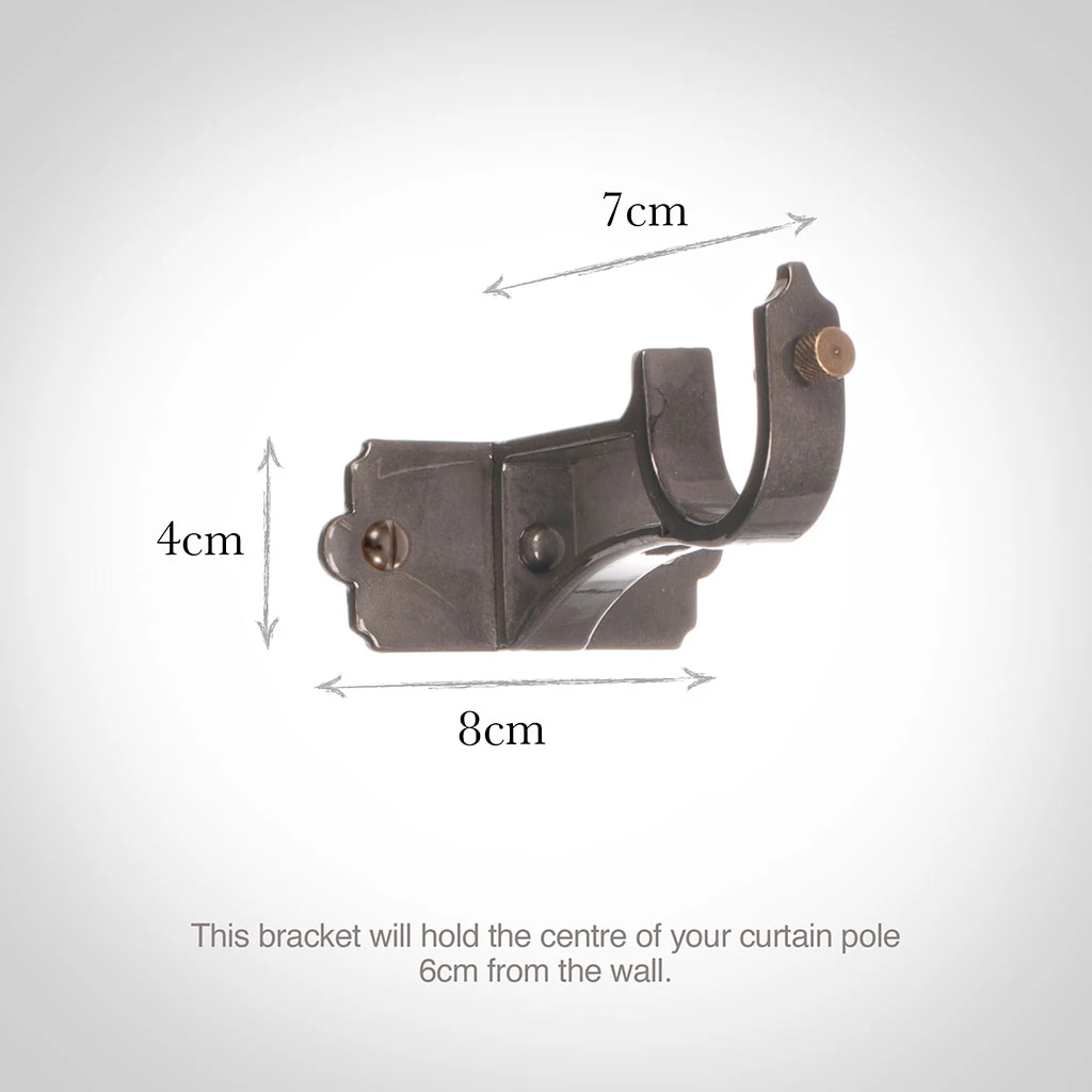 - Standard brackets are generally used at either end of your pole. With a reach (depth) of 8cm to the front of the pole, they will fit most window settings.