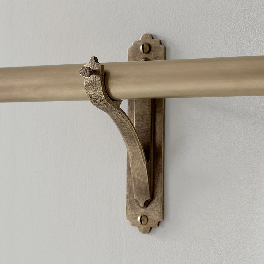 Handmade at Jim Lawrence from natural brass which has been lightly antiqued for a subtle, aged look, these brackets from part of our stunning collection of brass curtain pole accessories, including centre and recessed brackets, rings and a wide range of lovely finials to personalise your look. All our products are made using traditional metal working techniques and are hand finished to the very highest standards here at our Suffolk workshop. We are very proud of the details of the design which highlight the skill of our metal workers and their ability to make products that suit both contemporary and period properties.