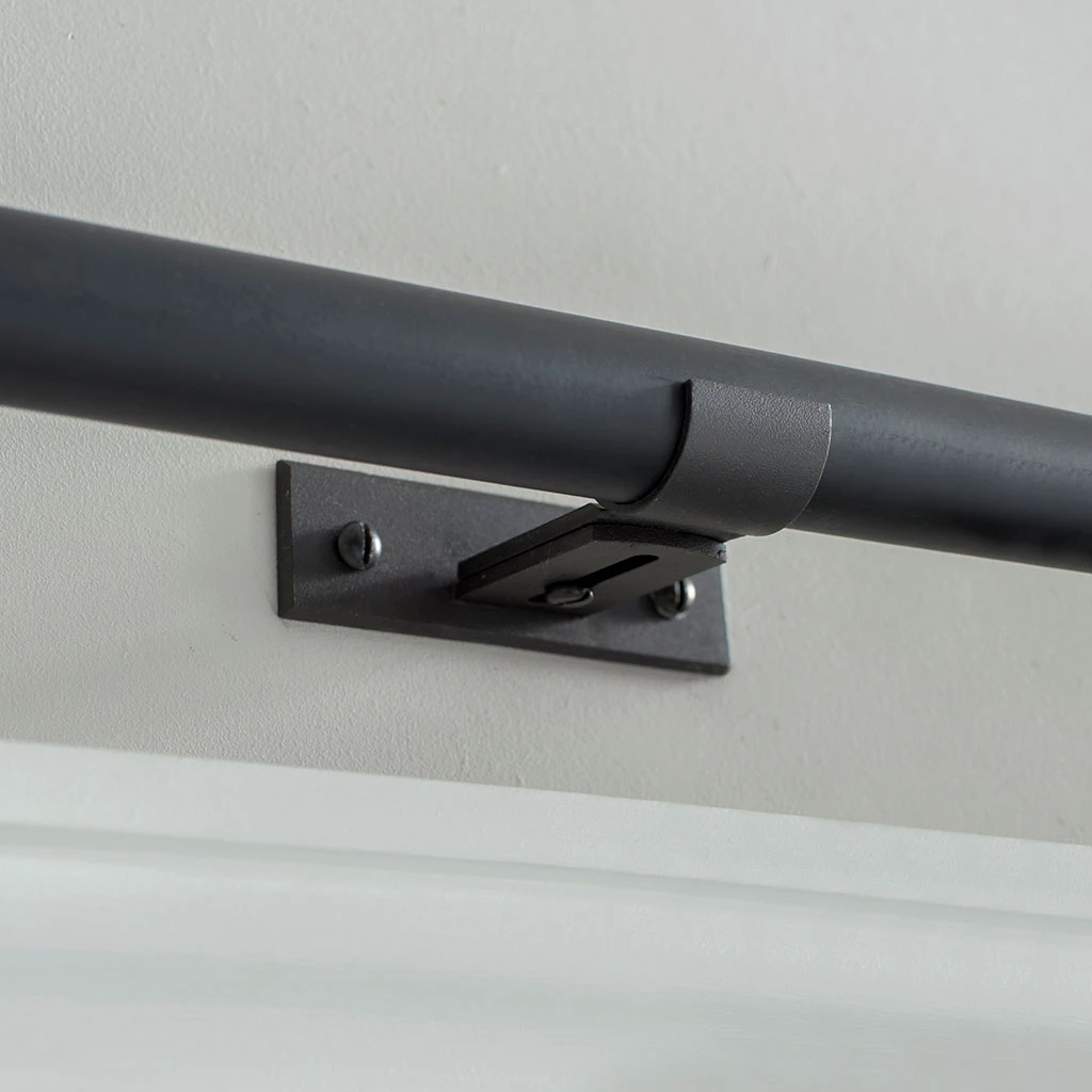 The brackets have an adjustable arm that enables you to fit a pole 6.2 – 8.4cm from the wall to suit your requirements. They work in conjunction with our 25m poles, any of our 25mm bracket range and our C-shaped 25mm Stoke Ring and Passing Rings for a complete system. Hand forged from high quality steel, these brackets are finished in traditional black Beeswax for a lovely soft, wrought iron look. We also make a wide range of complementary finials, rings and curtain holdbacks for you to choose from.