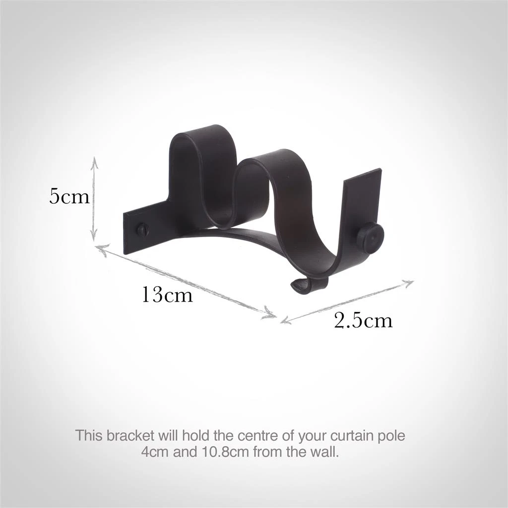 This bracket is finished in traditional black Beeswax for a lovely soft, wrought iron look. We also make a wide range of complementary finials, rings and curtain holdbacks for you to choose from. The brackets have a decorative thumbscrew at the front to help secure your pole, and chamfered edges for an elegant finish.