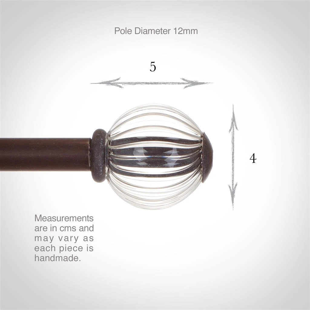 Fluted Glass Ball Finial For 12mm Pole In Beeswax