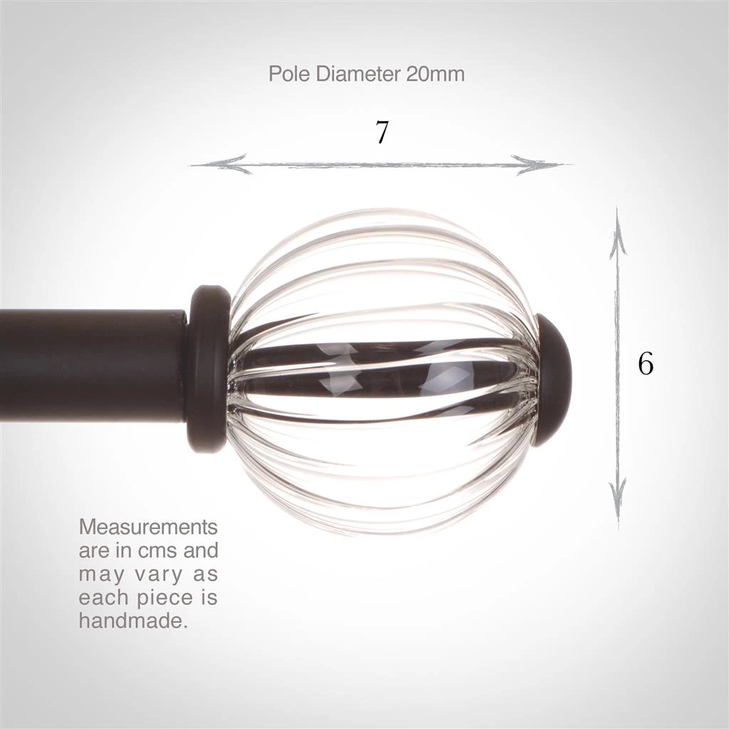 Fluted Glass Ball Finial For 20mm Pole In Matt Black