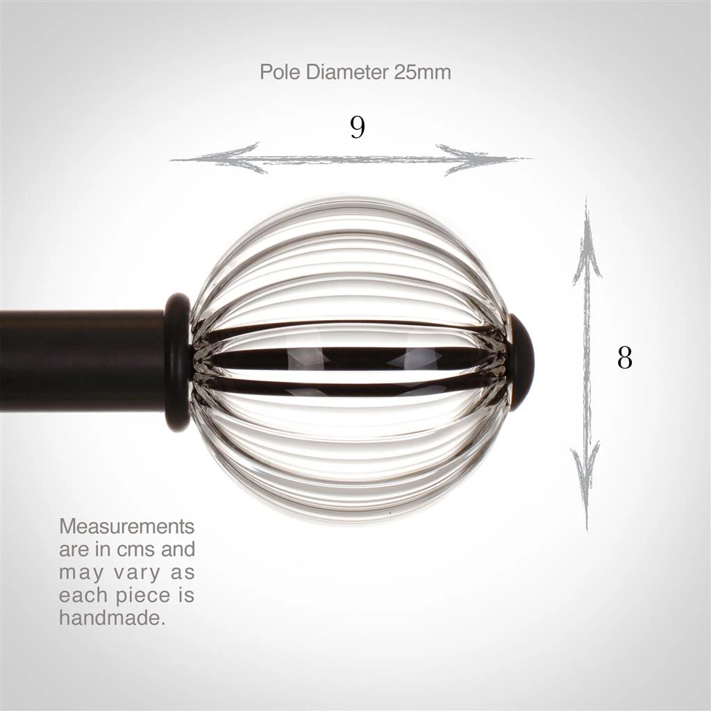 Fluted Glass Ball Finial For 25mm Pole In Beeswax