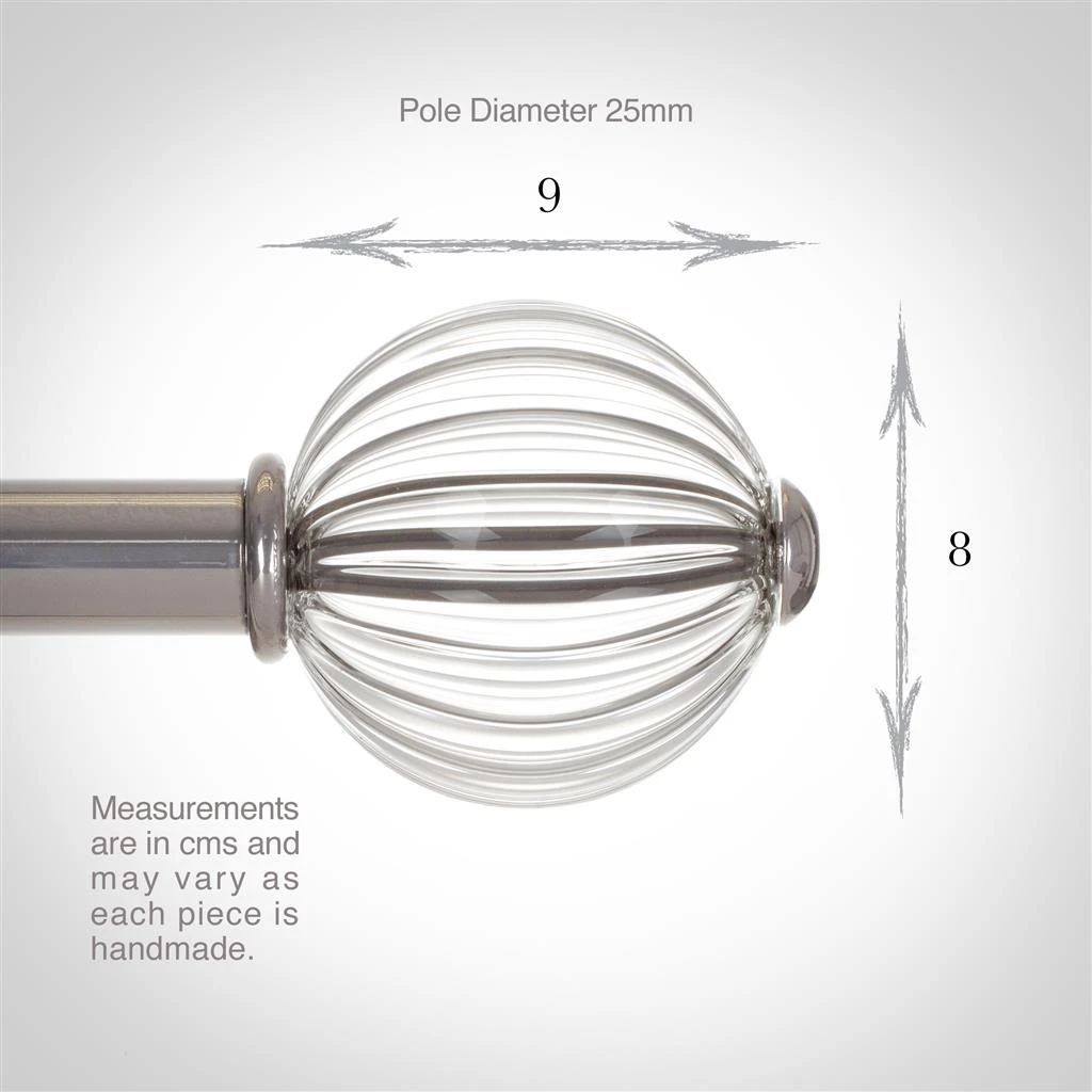 Browse our beautifully reflective, clear and fluted glass ball finials – a perfect companion for our forged iron curtain poles. These hand blown glass balls have a classic appearance and weighty quality that will finish your window dressing perfectly and give you endless pleasure looking at them.
