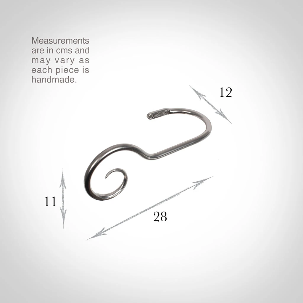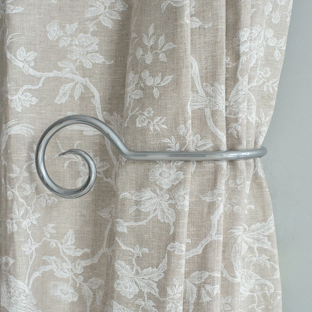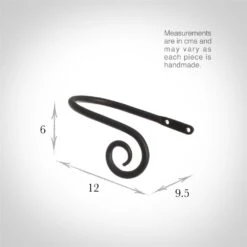 A hand forged, solid steel holdback to match our Bishop’s Crook finial. The holdbacks are available in two sizes: this larger holdback is generally recommended where there is more than one width of fabric in the curtain, unless it is a very light, unlined fabric.