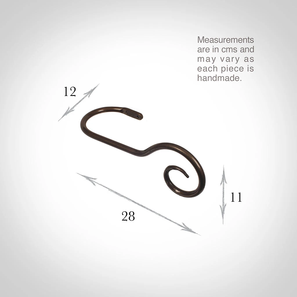 This monkey tail style holdback is hand forged and available in a choice of finishes to match your pole. We make the holdback in two sizes: unless your curtain is very light or has no more than a width of fabric we generally recommend this larger size.
