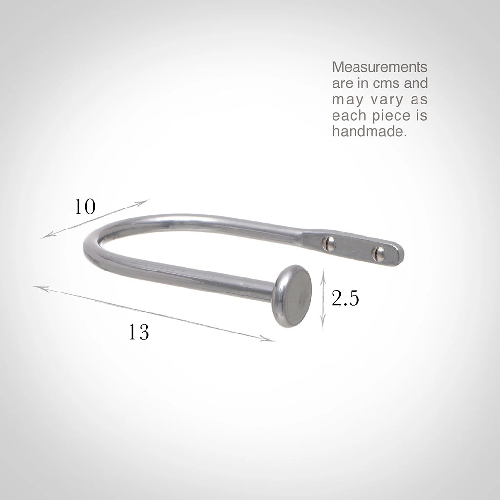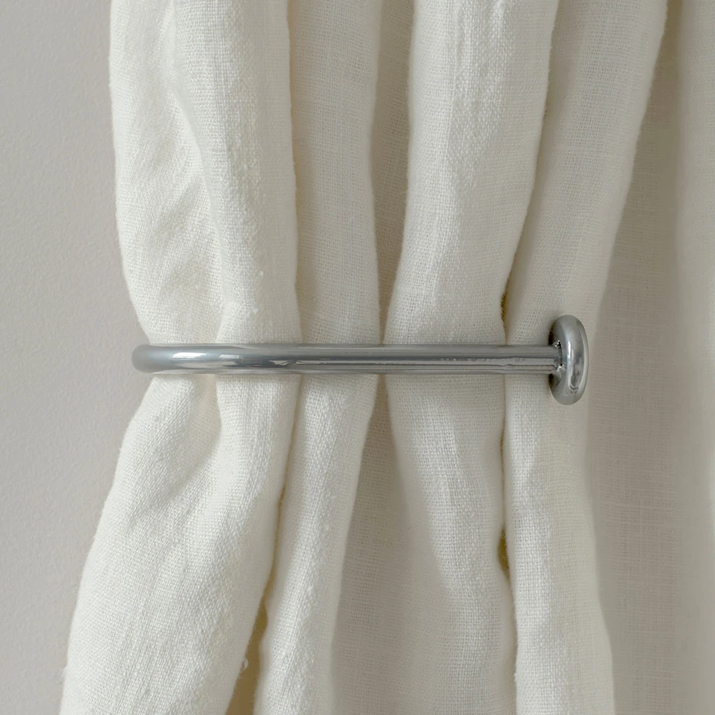 A hand forged, solid steel holdback to match our Button finial. The holdbacks are available in two sizes: this smaller holdback is generally recommended where there is only one width of fabric in the curtain (or more if it is a very light, unlined fabric).