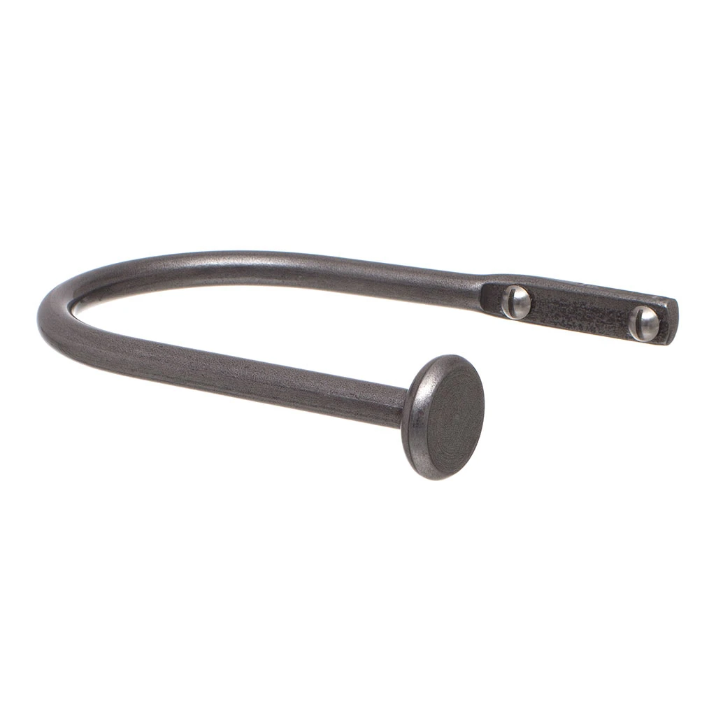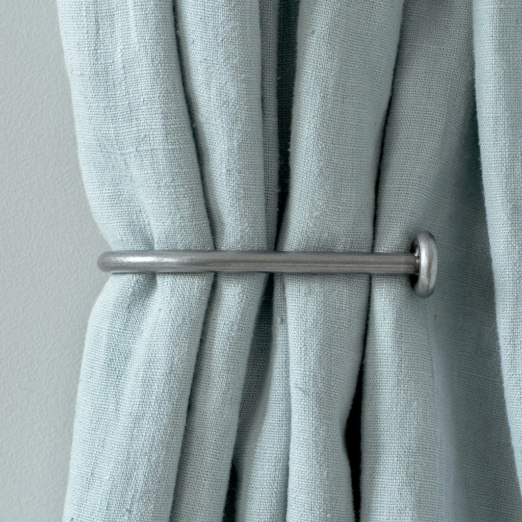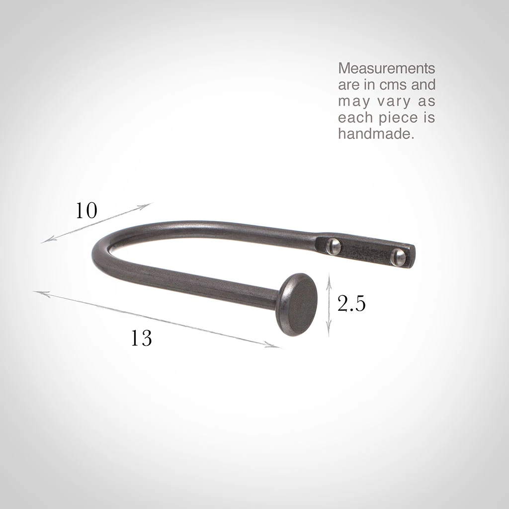 A hand forged, solid steel holdback to match our Button finial. The holdbacks are available in two sizes: this smaller holdback is generally recommended where there is only one width of fabric in the curtain (or more if it is a very light, unlined fabric).