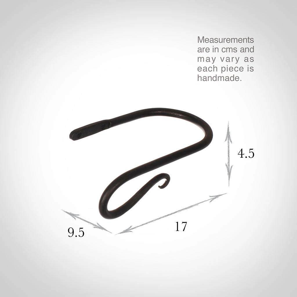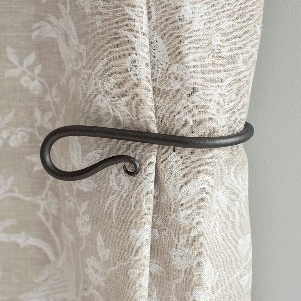 A hand forged, solid steel holdback to match our Shepherd’s Crook finial. The holdbacks are available in two sizes: this smaller holdback is generally recommended where there is only one width of fabric in the curtain (or more if it is a very light, unlined fabric).