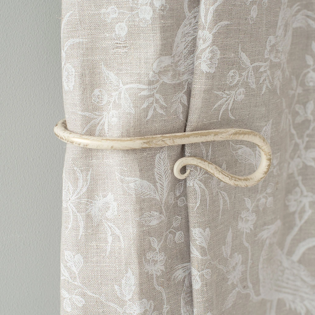 An elegantly curved, hand forged holdback for smaller curtains. We finish our holdbacks in natural beeswax, polished steel and a selection of paint finishes, to match our curtain pole range.