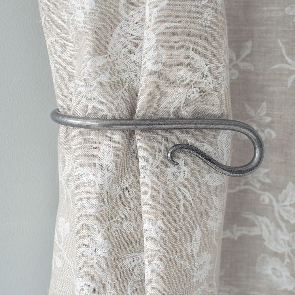 An elegantly curved, hand forged holdback for smaller curtains. We finish our holdbacks in natural beeswax, polished steel and a selection of paint finishes, to match our curtain pole range.